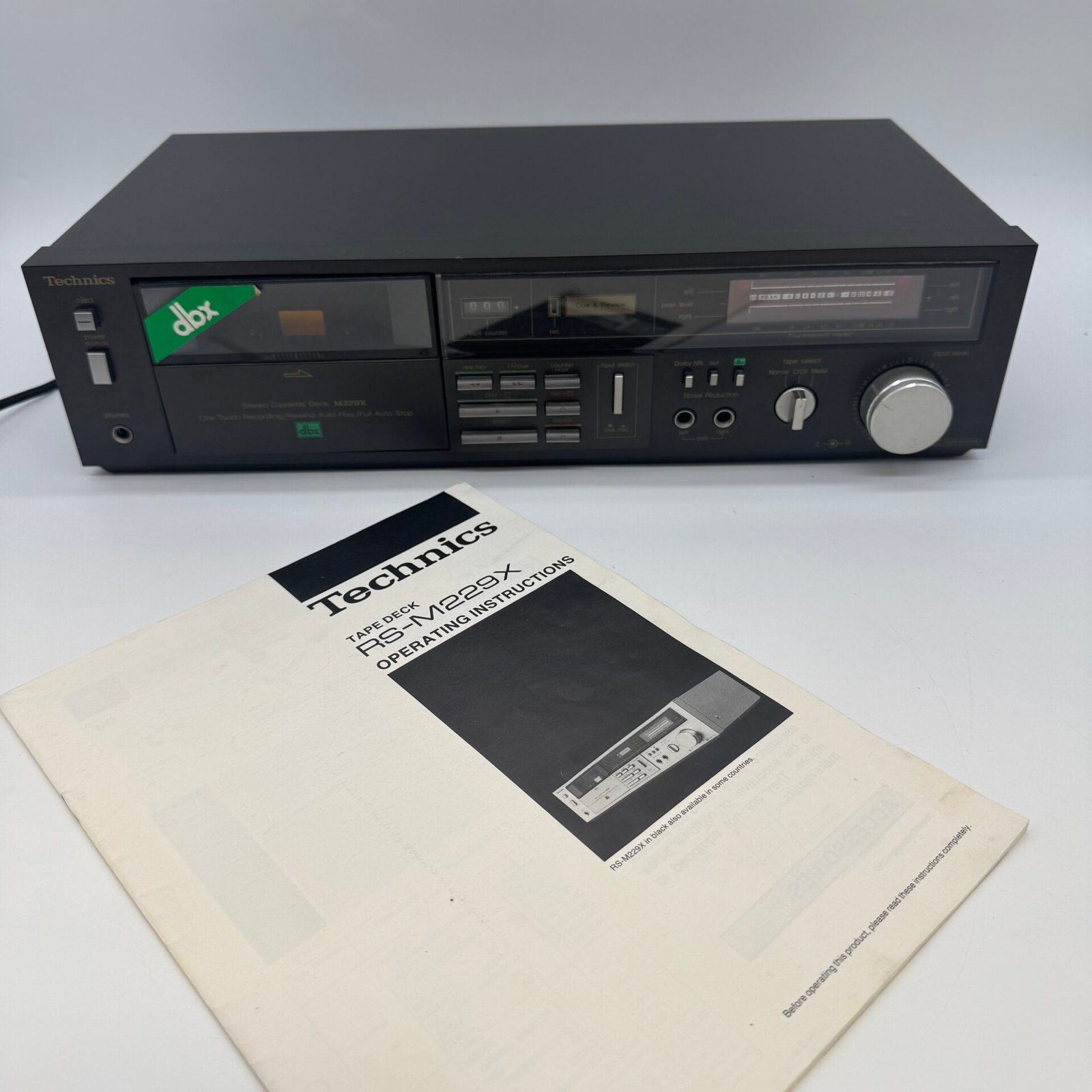 This cassette deck includes DBX noise reduction and Dolby system and comes with the original operating instructions manual.