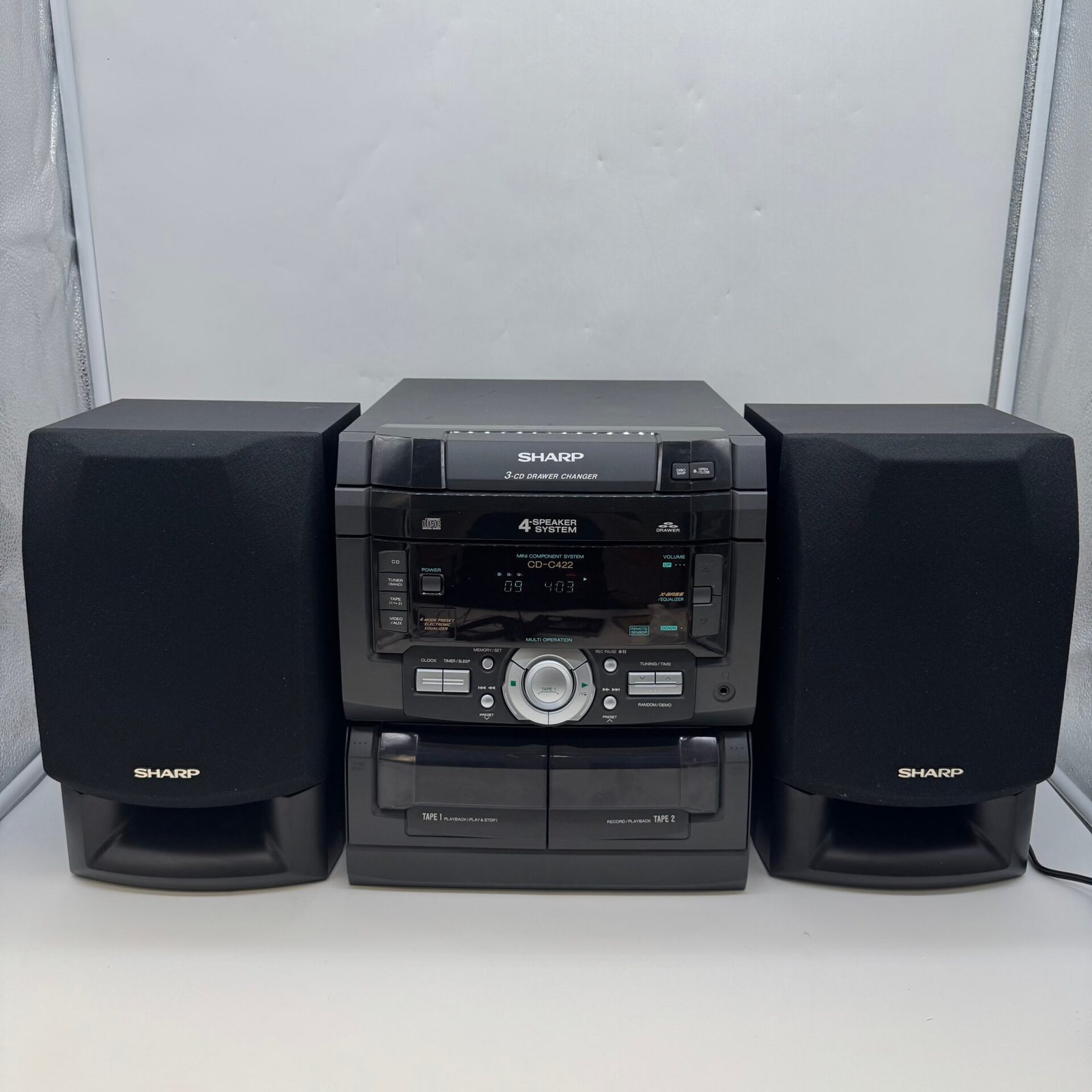 Vintage 1990s Sharp CD-C422 Mini Stereo System 3-CD Changer Dual Cassette Tested