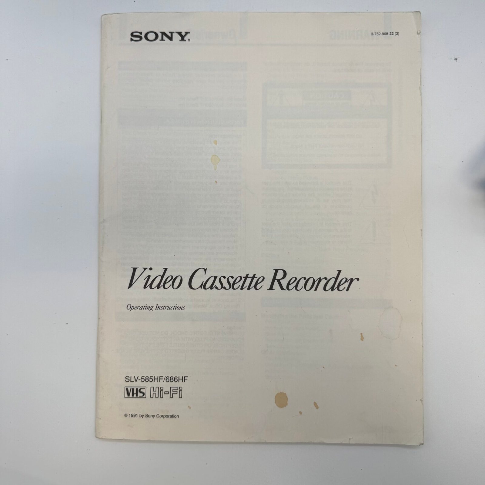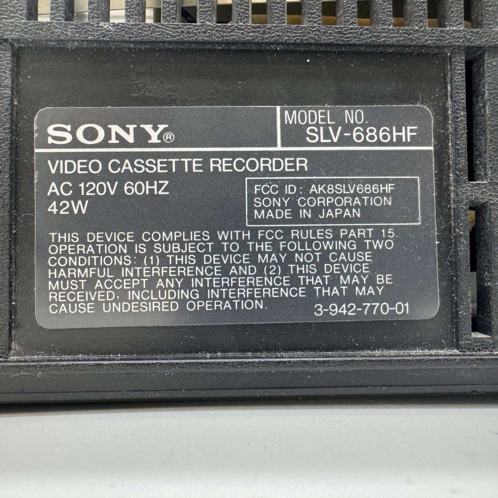 Vintage Sony SLV-686HF VHS Hi-Fi Stereo Video Cassette Recorder from the early 1990s.