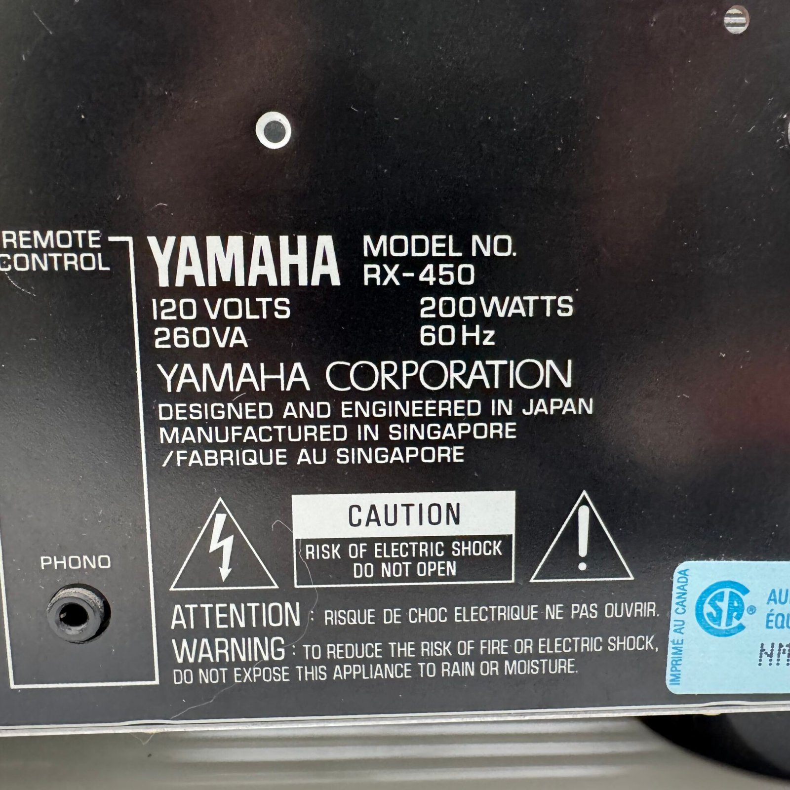 Model: Yamaha RX-450