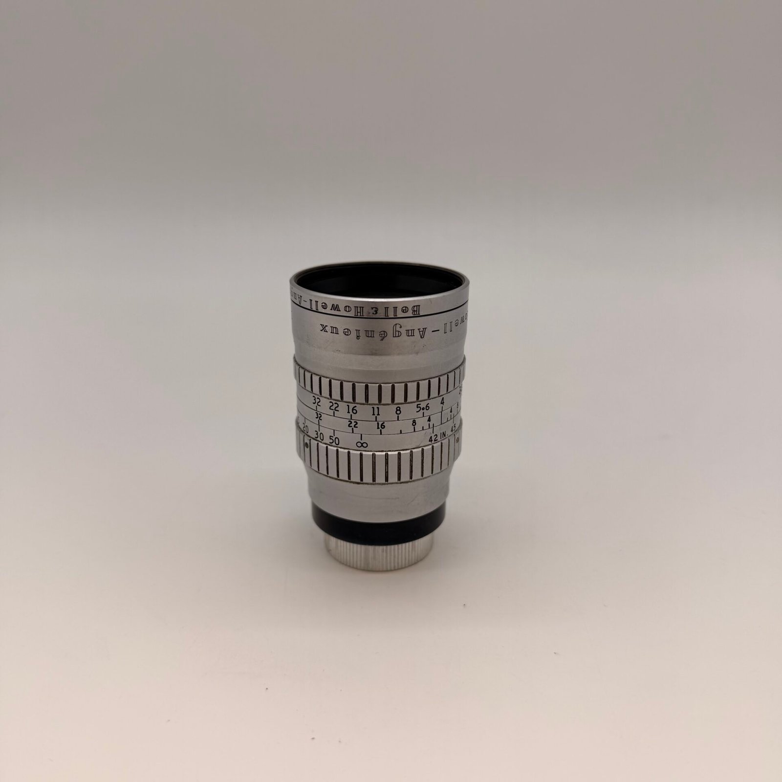 This lens was produced by Angenieux (France) for use with Bell & Howell 16mm movie cameras such as the Filmo series.