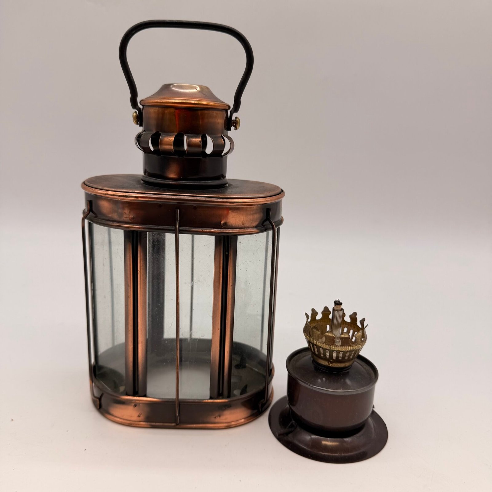 Vintage Brass Lantern Oil Lamp Glass Rustic Farmhouse Hong Kong