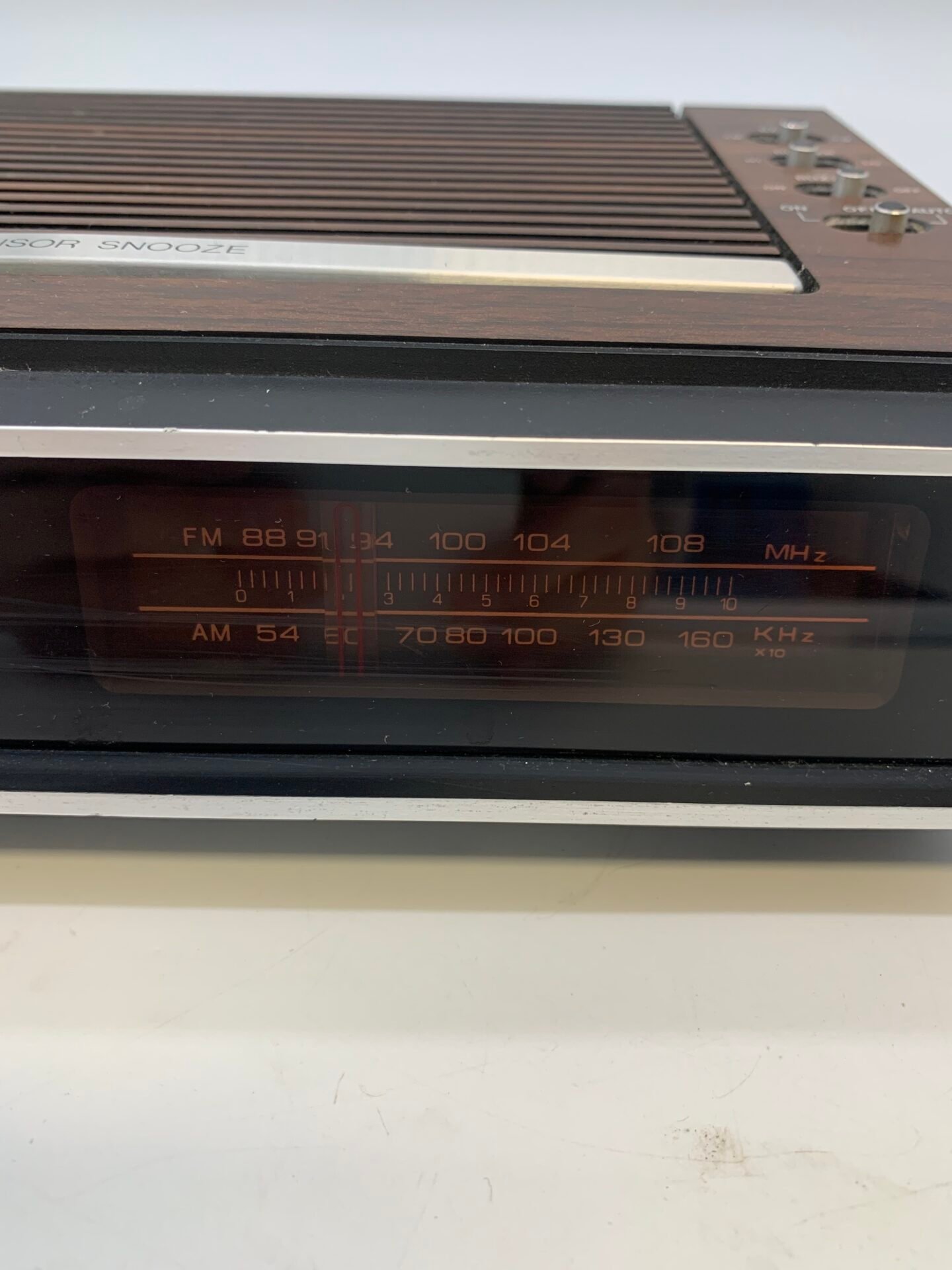 Classic red LED display with AM/FM tuner.