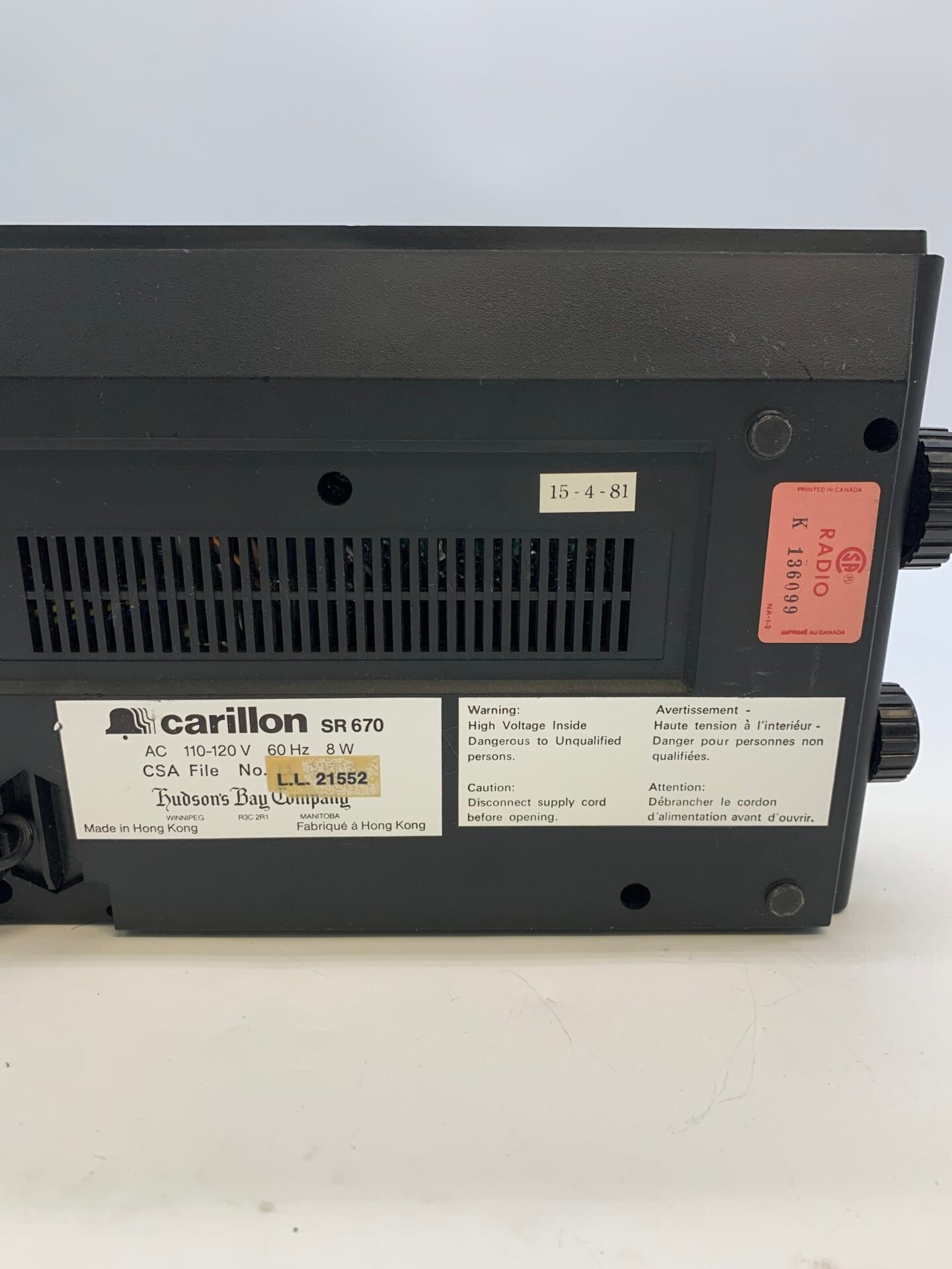 Vintage Carillon SR 670 Electronic Clock Radio.