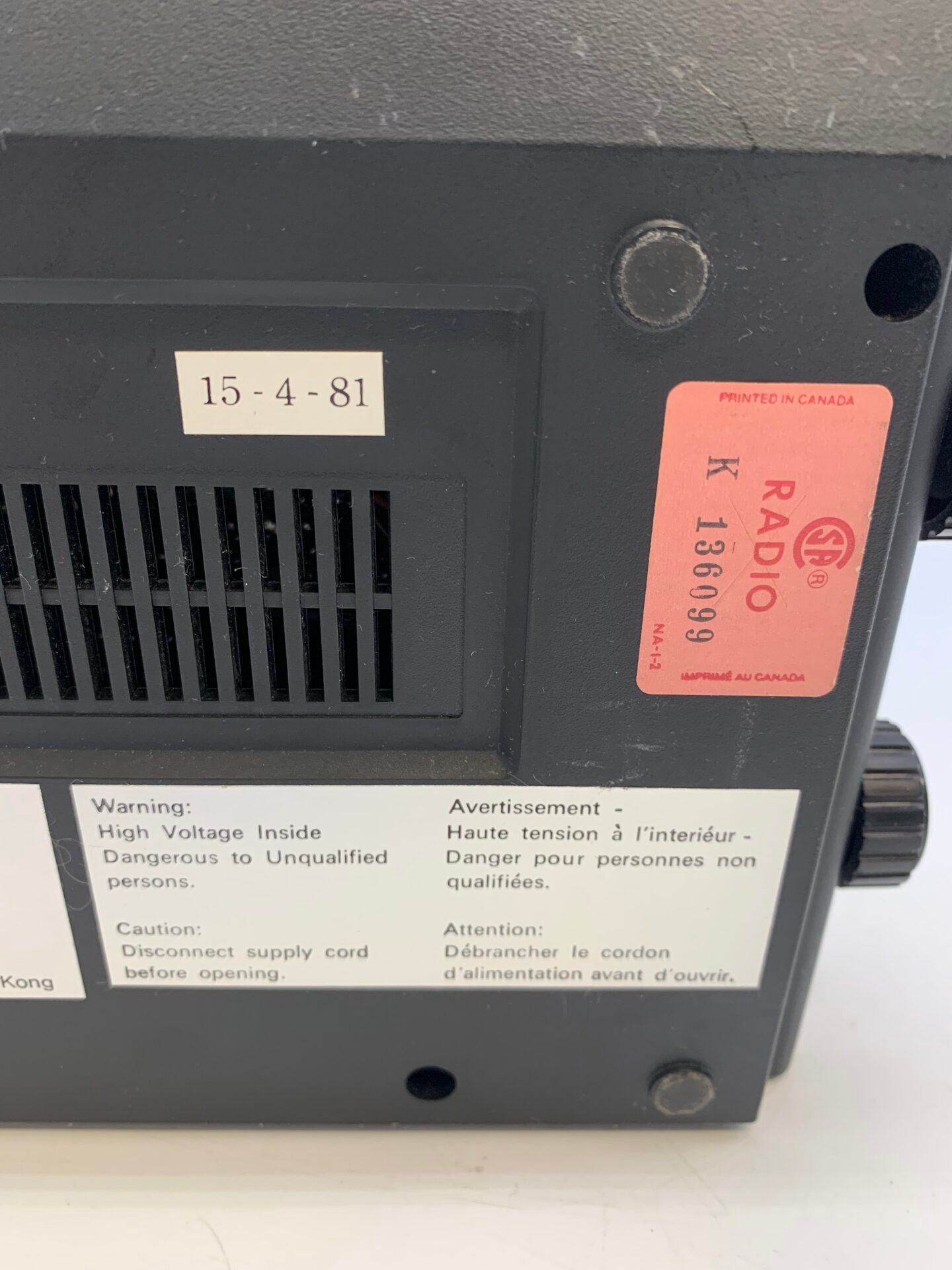 Manufactured circa 1981.
