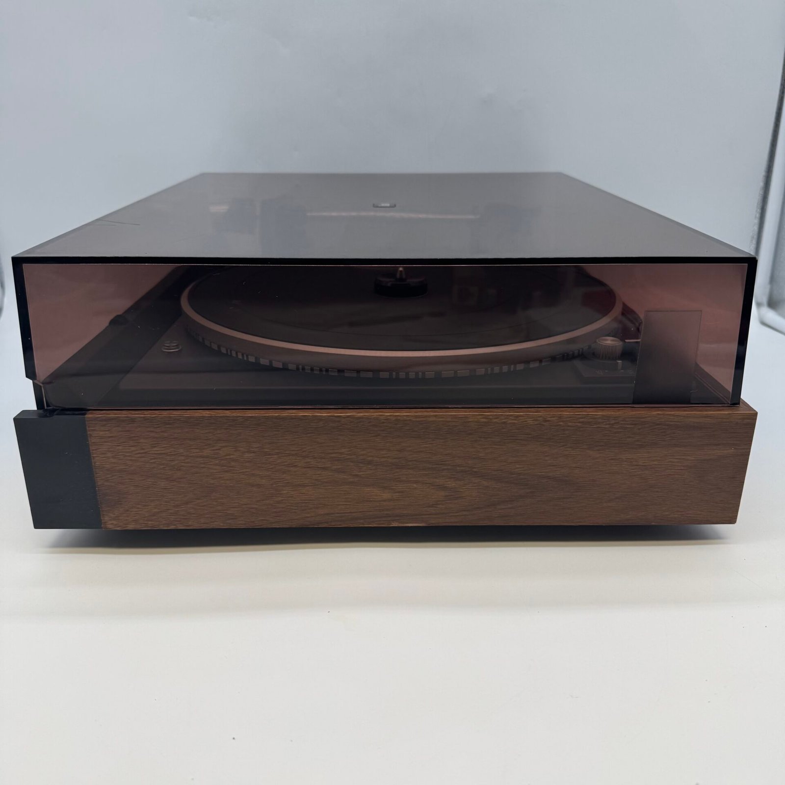 This unit has been tested and is fully working. All main functions operate properly, including smooth platter rotation and tonearm movement. The turntable features a solid wood plinth and original smoked dust cover, giving it a beautiful vintage look that fits perfectly in any audio setup or collection.