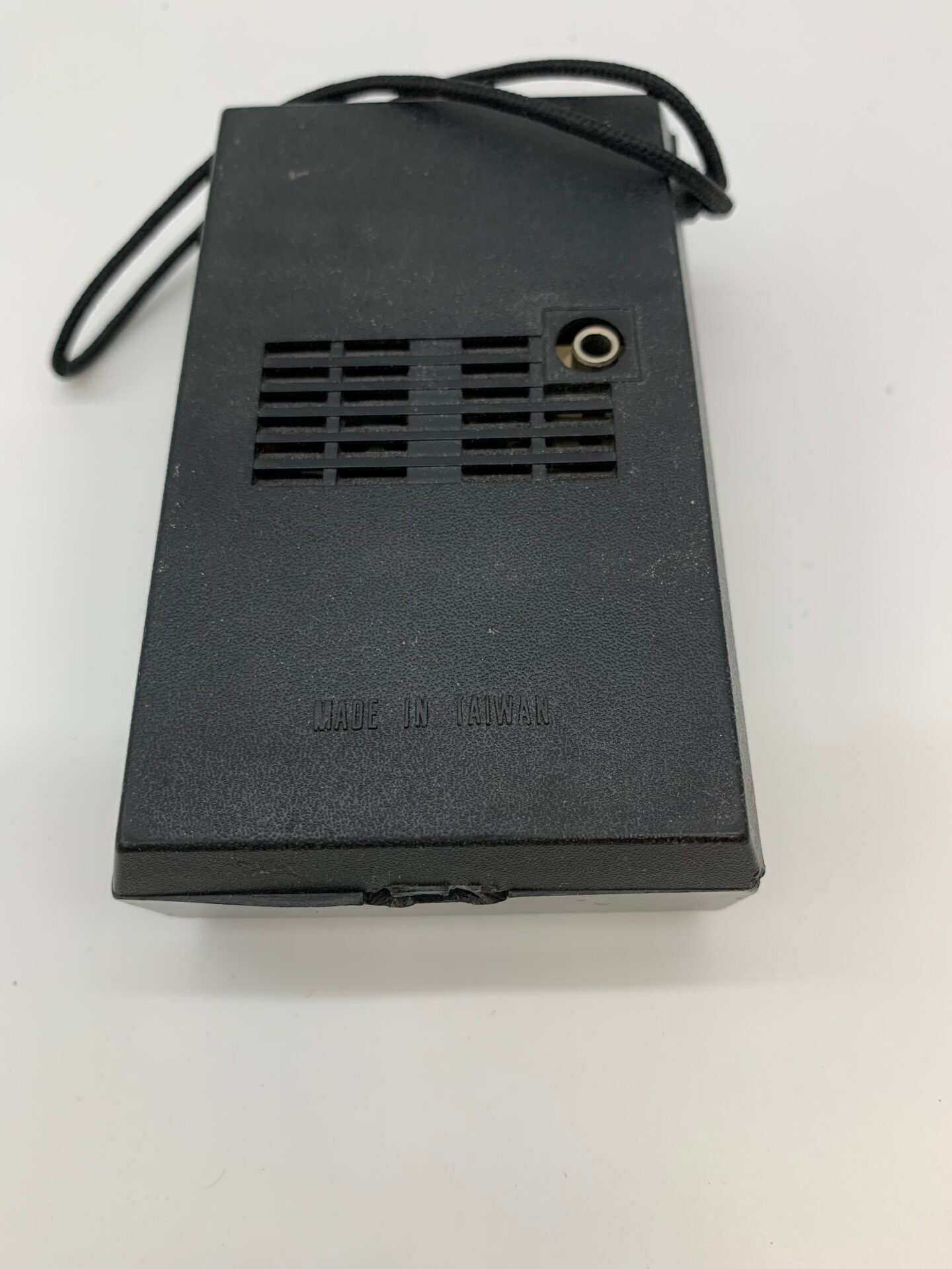 This classic solid-state portable radio has been tested and works properly. It produces sound and receives AM radio stations.