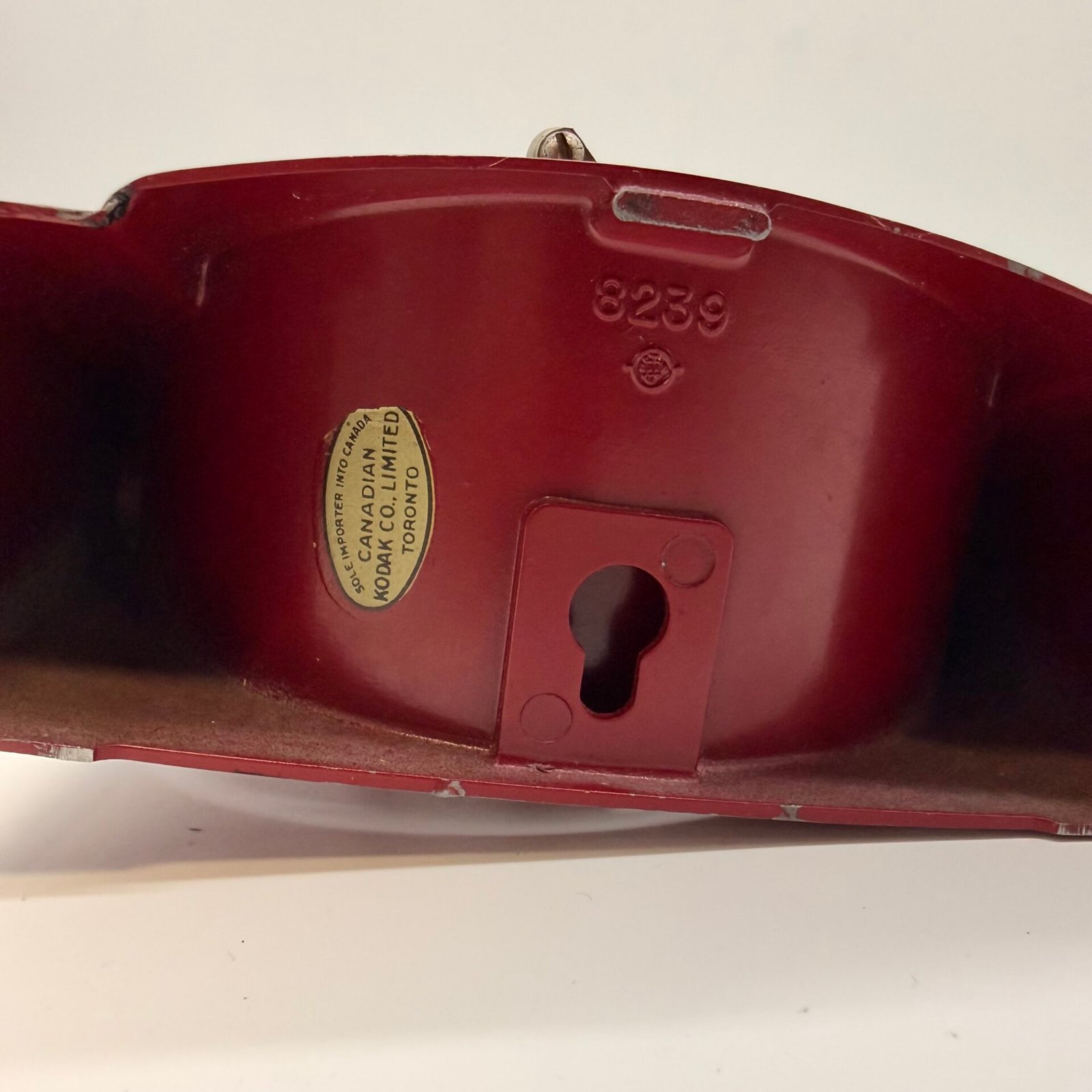 Vintage Kodak mechanical darkroom timer in red Bakelite-style housing. Manufactured by Eastman Kodak Co., Rochester, N.Y. Features wall-mount slot on underside and classic mid-century industrial design. Ideal for photography collectors, darkroom setups, or vintage display.