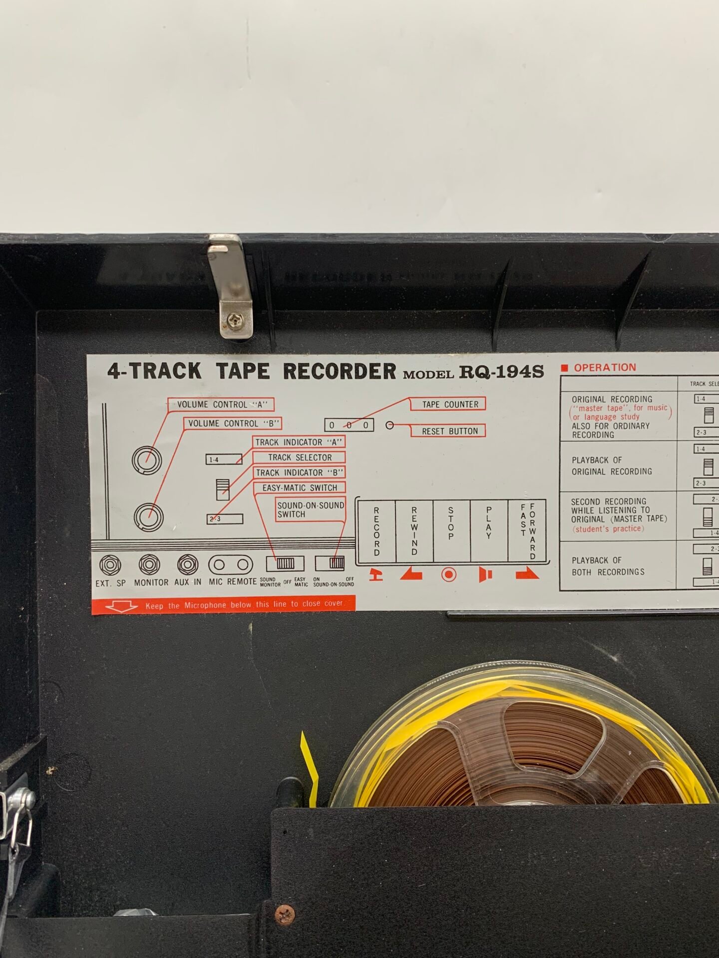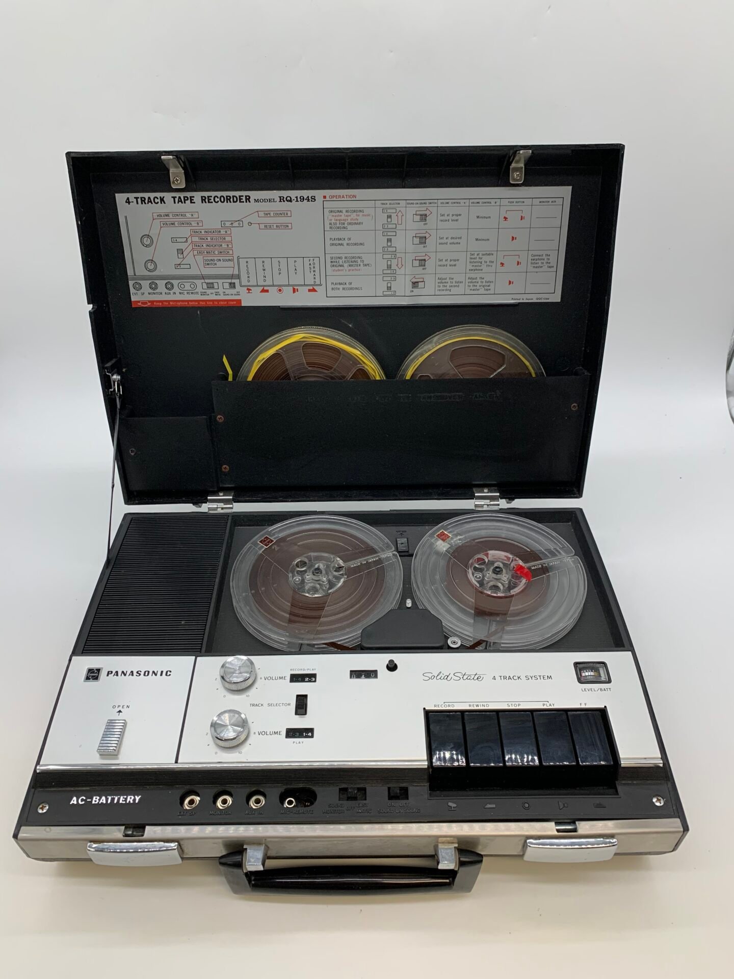 A vintage Panasonic RQ-194S reel-to-reel tape recorder manufactured in Japan.