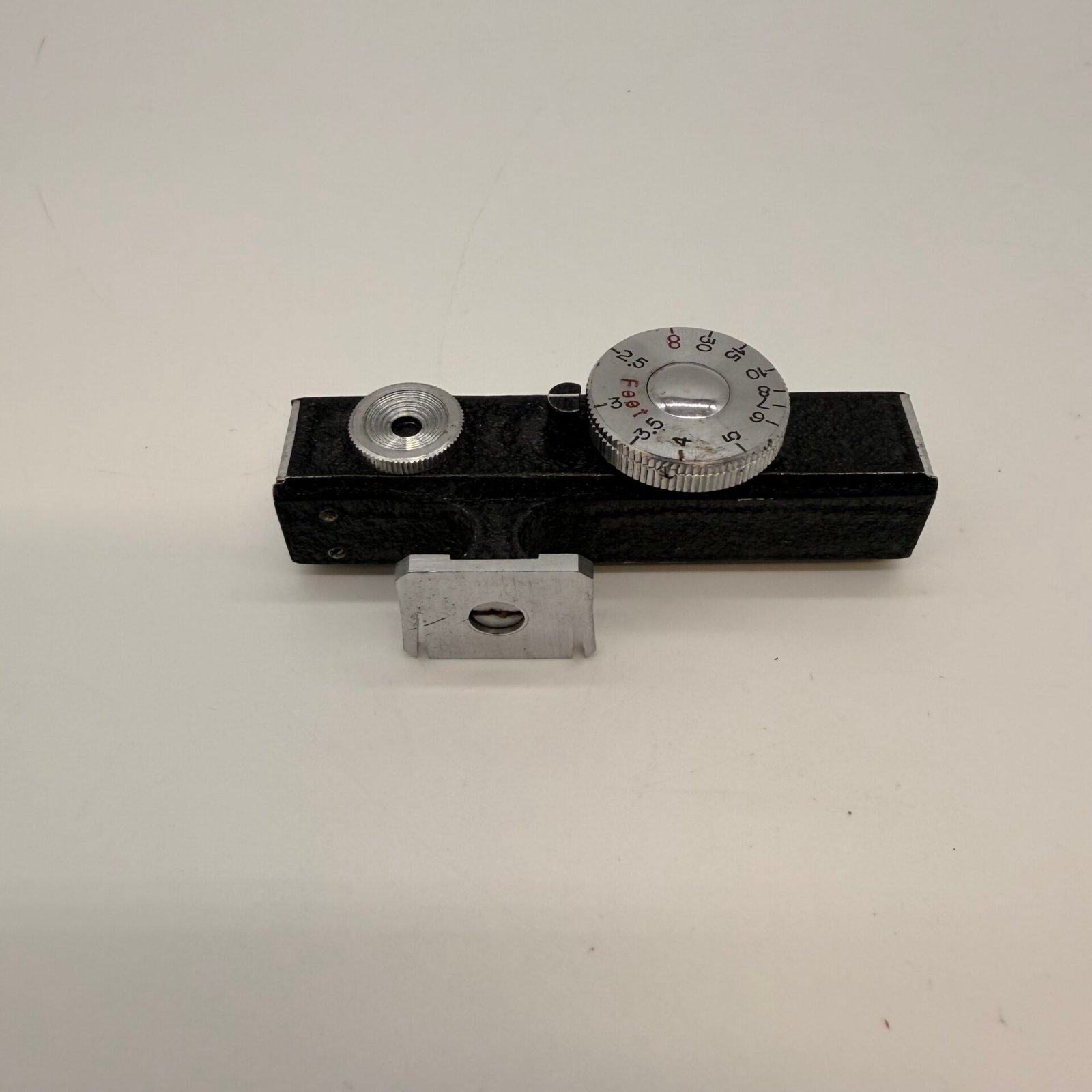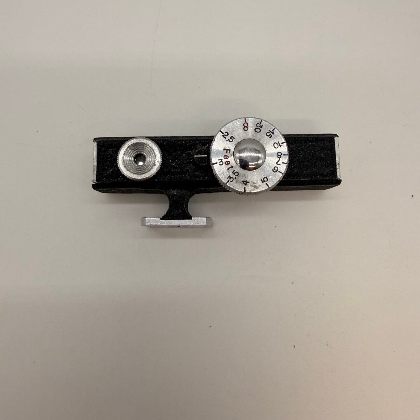 This device mounts to the accessory shoe of vintage cameras and allows photographers to estimate subject distance for manual focusing lenses.