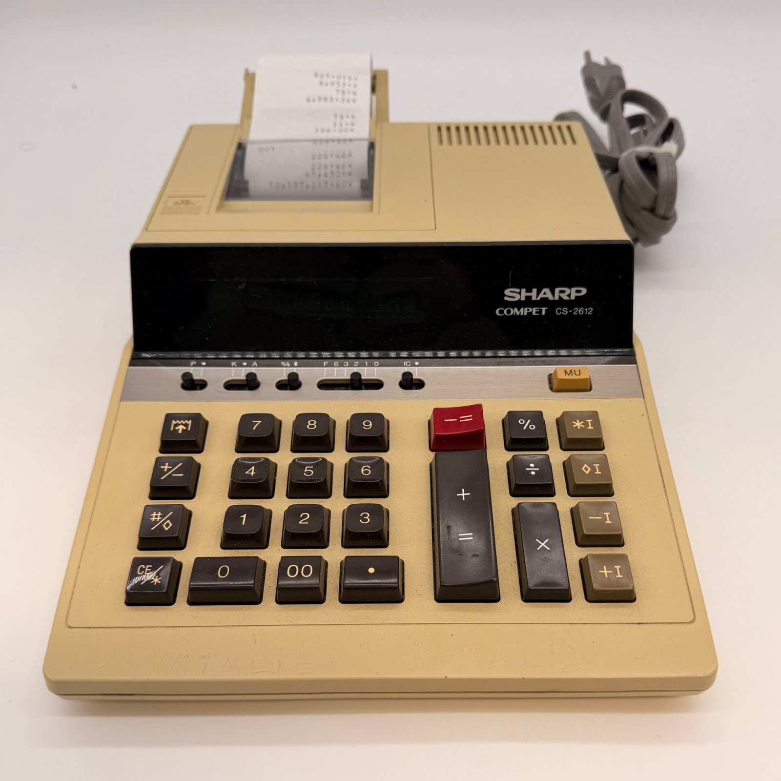 Vintage Sharp Compet CS-2612 electronic printing calculator manufactured in Japan.
