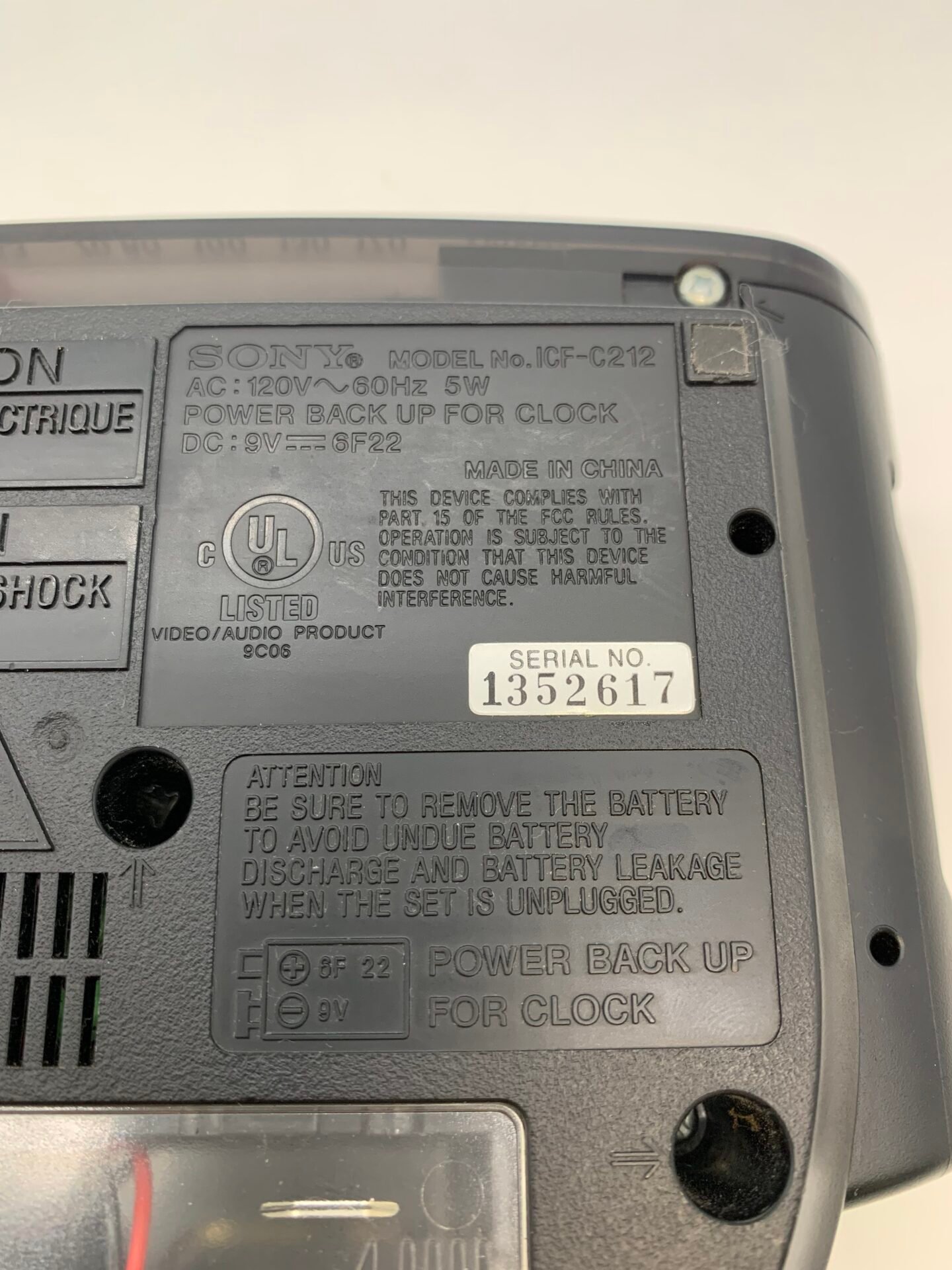 Classic Sony digital alarm clock radio, model ICF-C212. A simple and reliable bedside essential with timeless design.