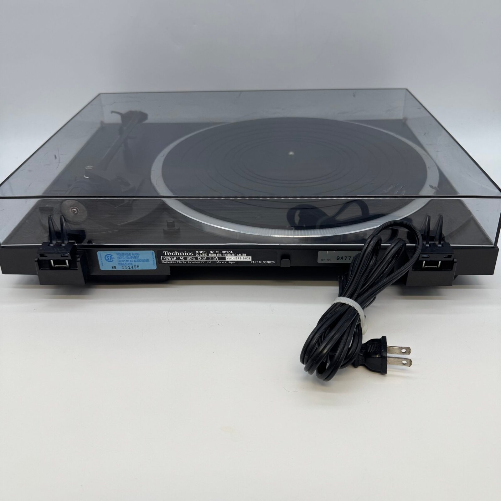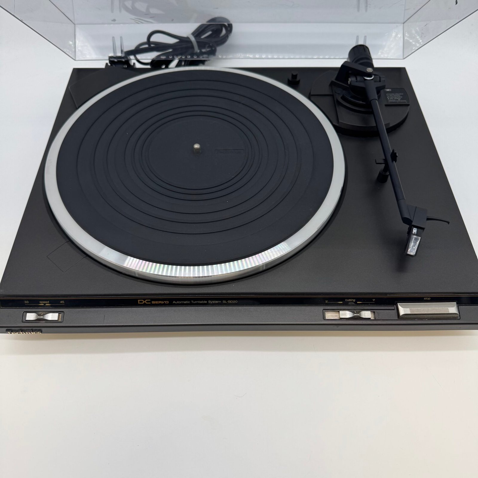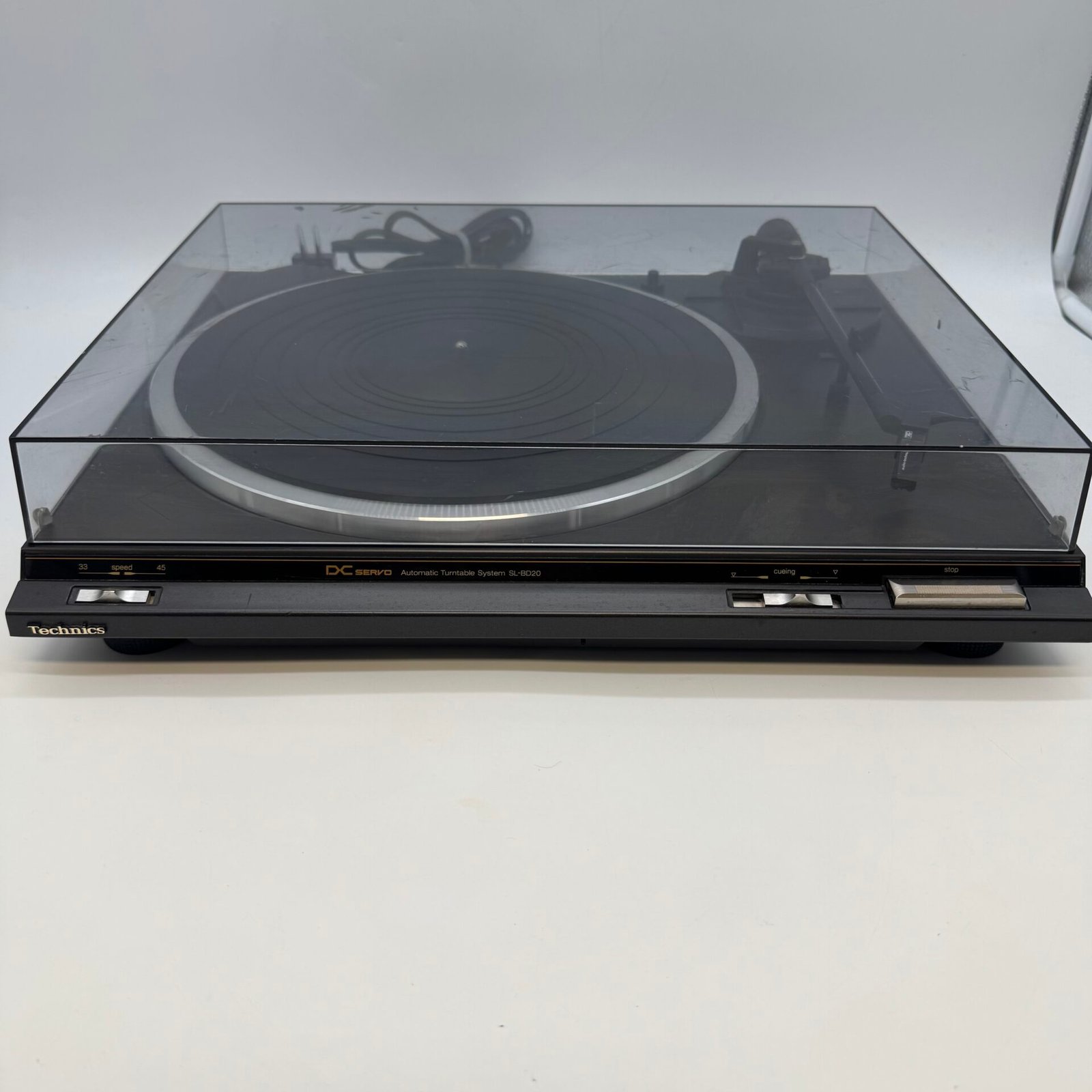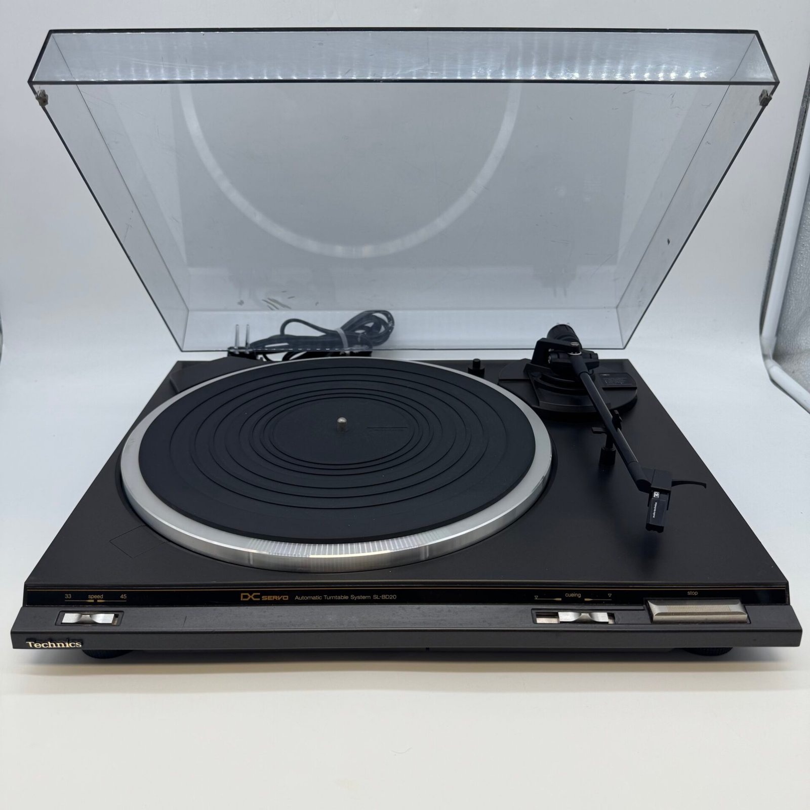 This Technics SL-BD20A automatic turntable features DC servo control for stable playback.