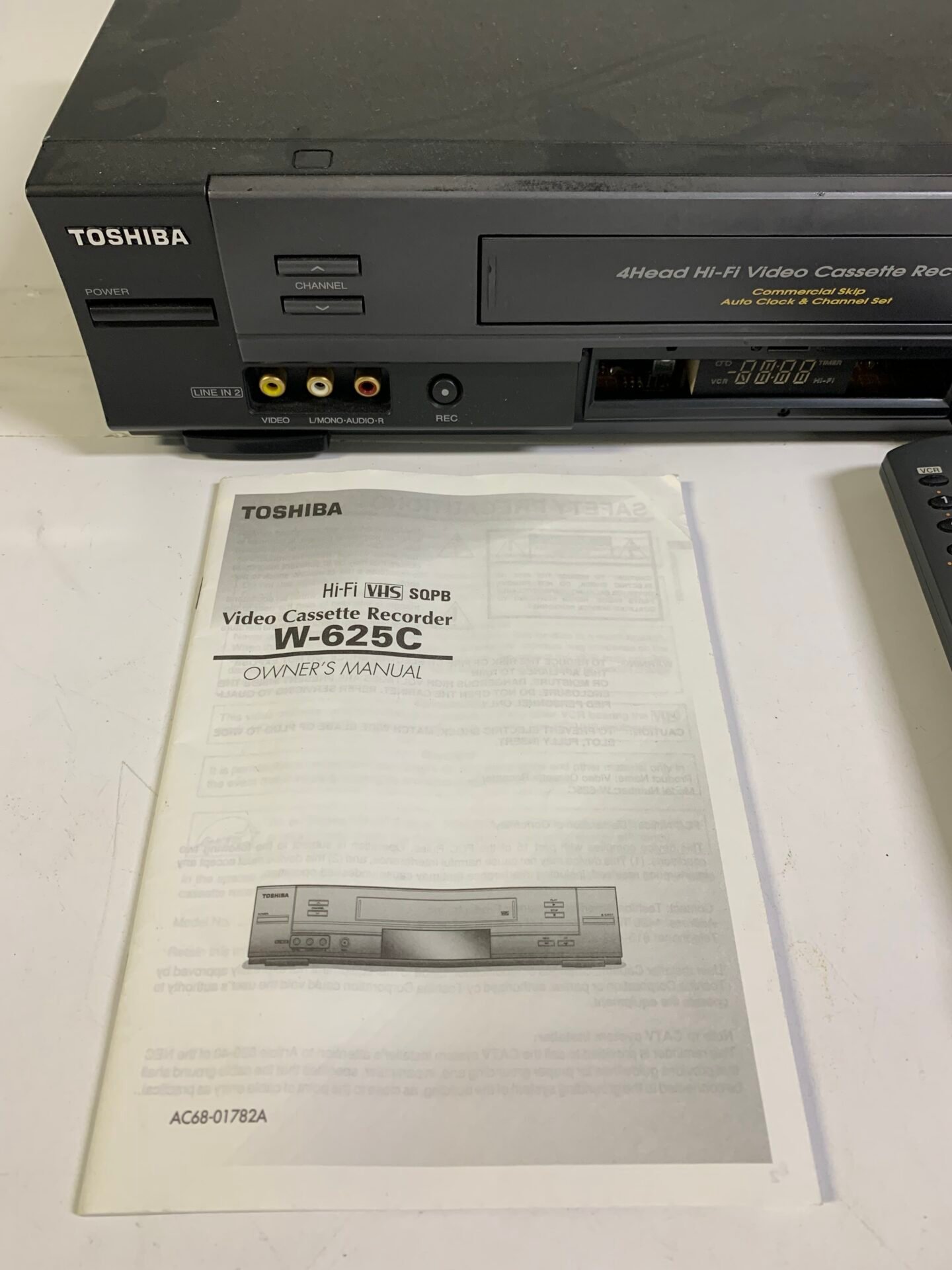 Vintage Toshiba VHS VCR W-625C 4 Head Hi Fi with Remote and Manual