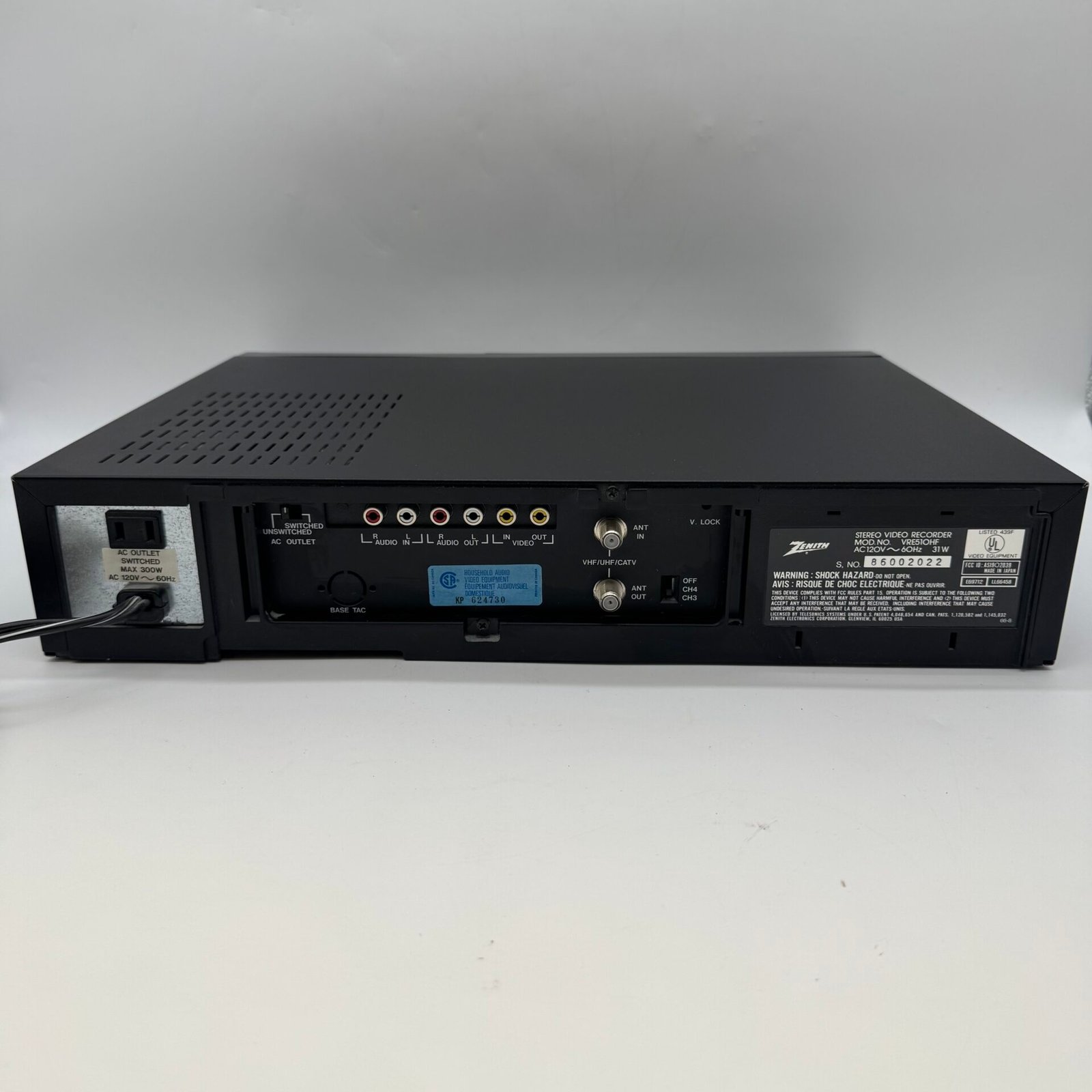 Vintage Zenith VRE510HF VHS Hi-Fi HQ 4-Head VCR Player Recorder- JAPAN TESTED