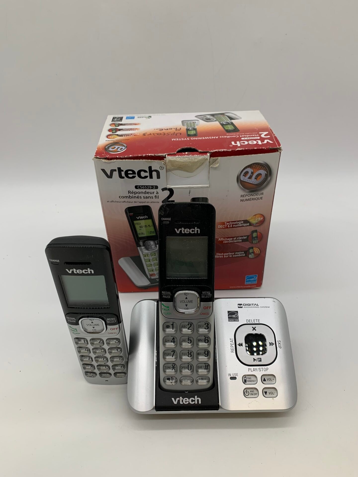 VTech cordless phone system (CS6529-2) in open box condition.