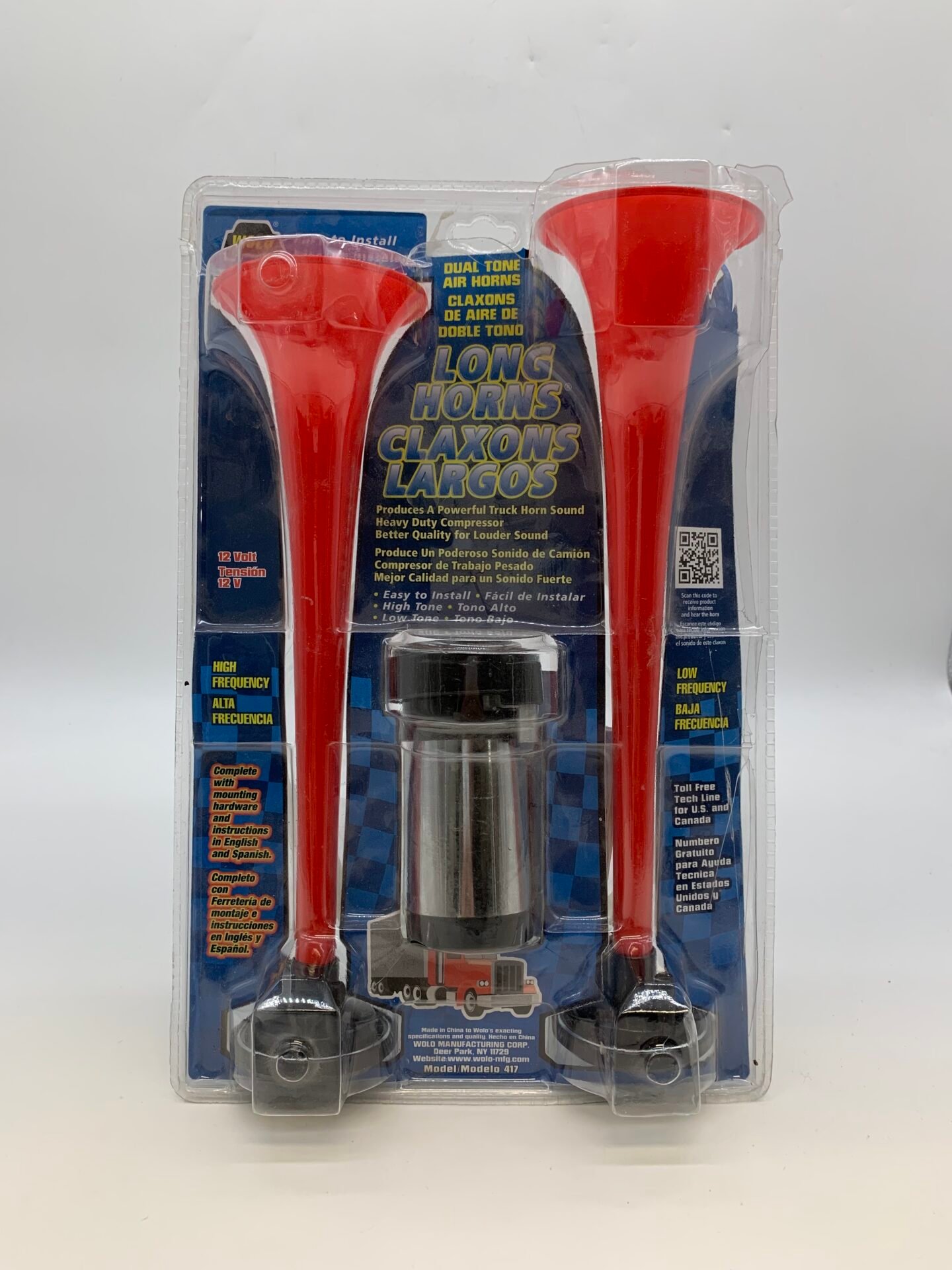 Wolo 417 Dual Tone Air Horn Kit 12V Long Horns Truck Sound New Sealed