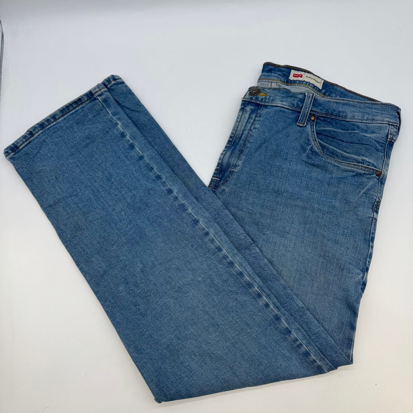 Wrangler Slim Straight Men’s Jeans 38×30 Light Wash – Used