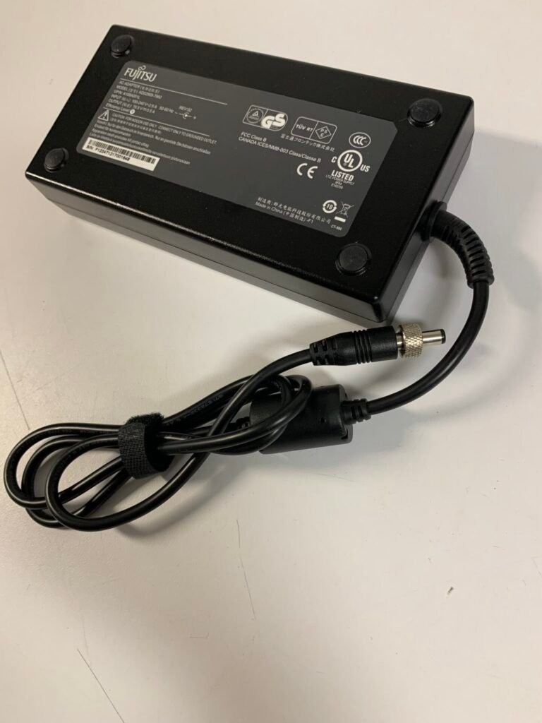 This is a high-power original Fujitsu power supply with locking barrel connector, designed for professional Fujitsu systems and industrial devices requiring stable 19.5V output.