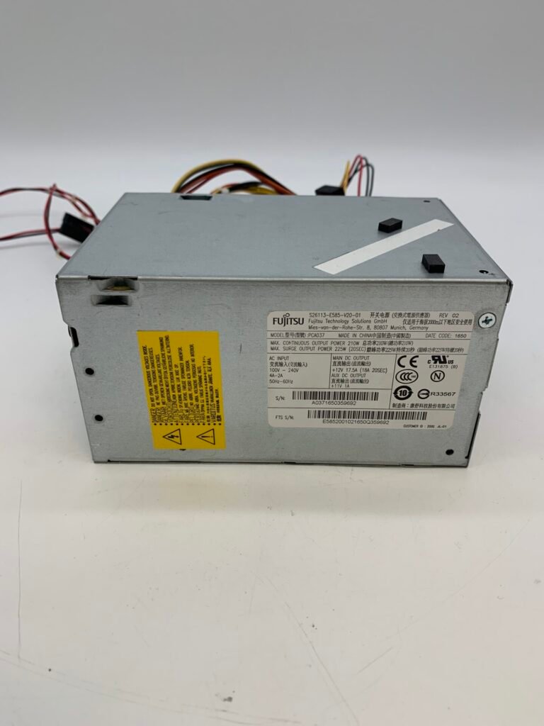 $100.00Power up your system with the Fujitsu Power Supply S26113-E499-V50, a reliable and robust power module tailored for the Fujitsu ESPRIMO C620. Designed with an ATX form factor and a 20-pin interface, this power supply ensures a stable output of up to 210 watts. It’s equipped with a single 12V line, boasting a maximum current of 20A, to provide a strong and consistent power source for your computer’s needs.