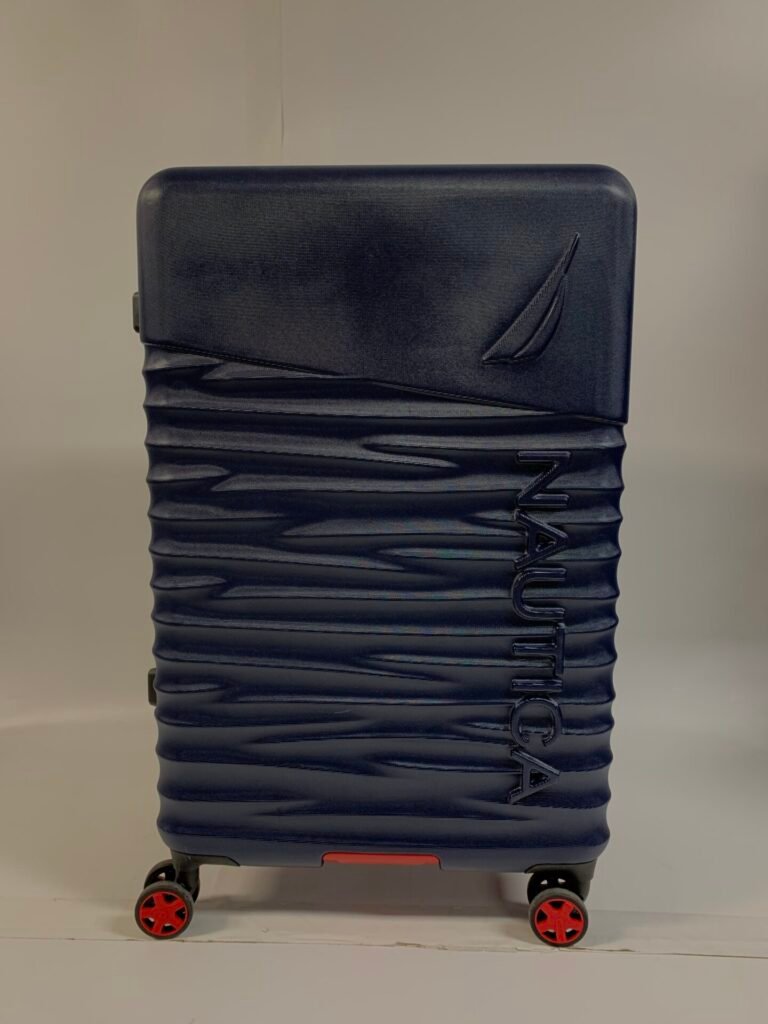$55.00Stylish NAUTICA 22” Carry-On Luggage in Navy Blue with bold red accents.