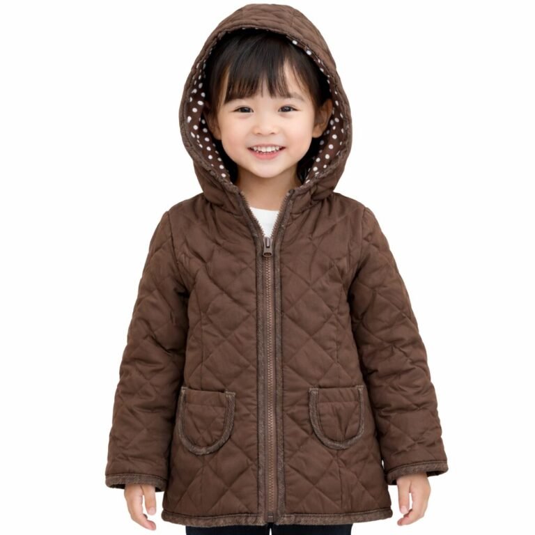 $20.00Old Navy girls brown quilted hooded jacket with cute white polka dot lining.