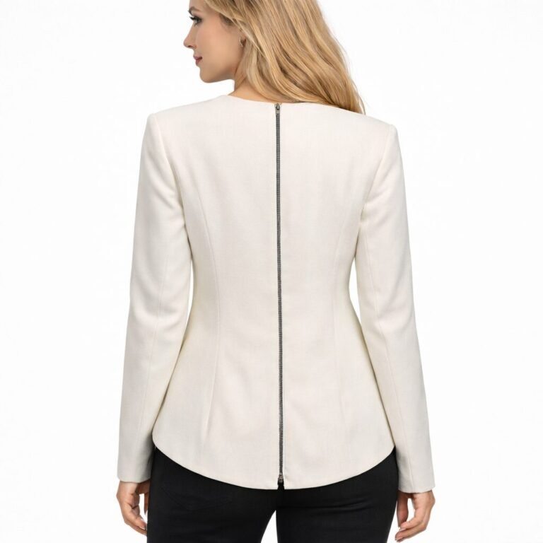 This sophisticated piece features a structured front blazer style with a flowing chiffon back layer, creating a modern and stylish silhouette. Perfect for formal occasions, office wear, or elegant evening outfits.