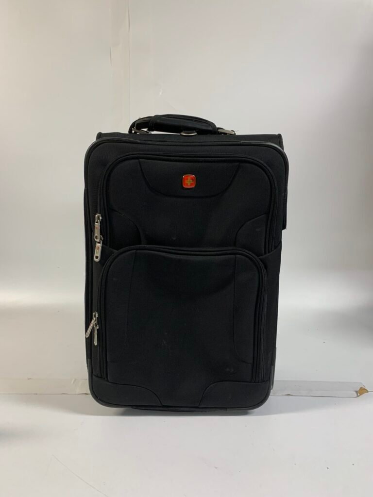 $30.00Authentic SwissGear black rolling carry-on suitcase.